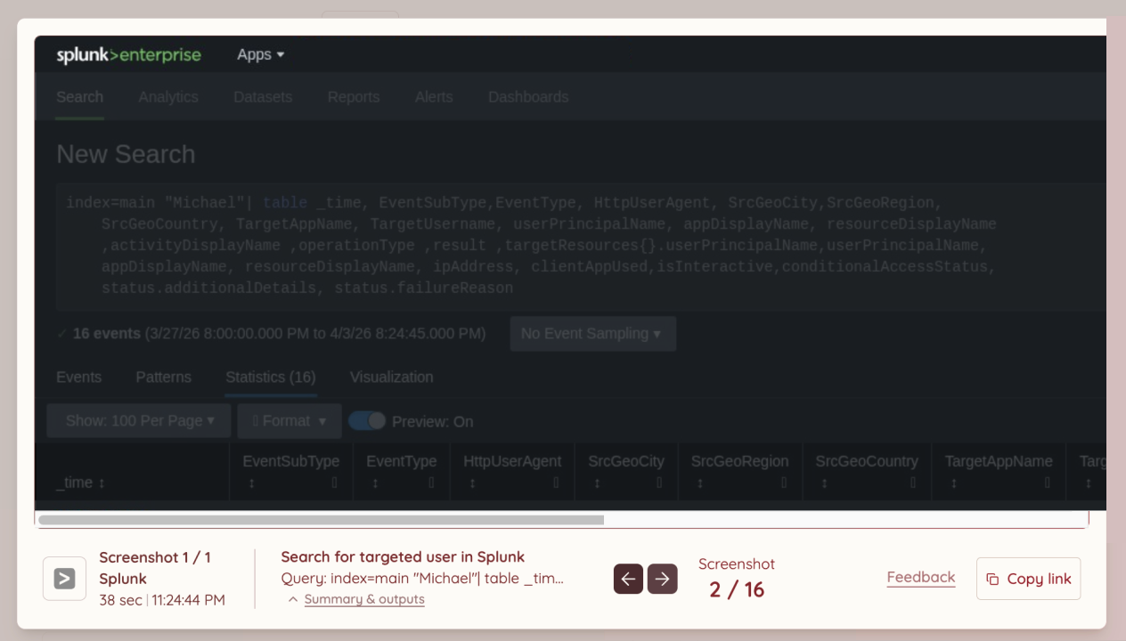 The reason SOC analysts document isn't distrust. It's precision. A good investigation has always meant showing your work. The summary an analyst writes is their claim, the insight they've drawn from what they saw. The screenshot is the fact. Undisputable evidence, captured at the moment of discovery. Together they tell the full story: here is what I found, and here is the proof.