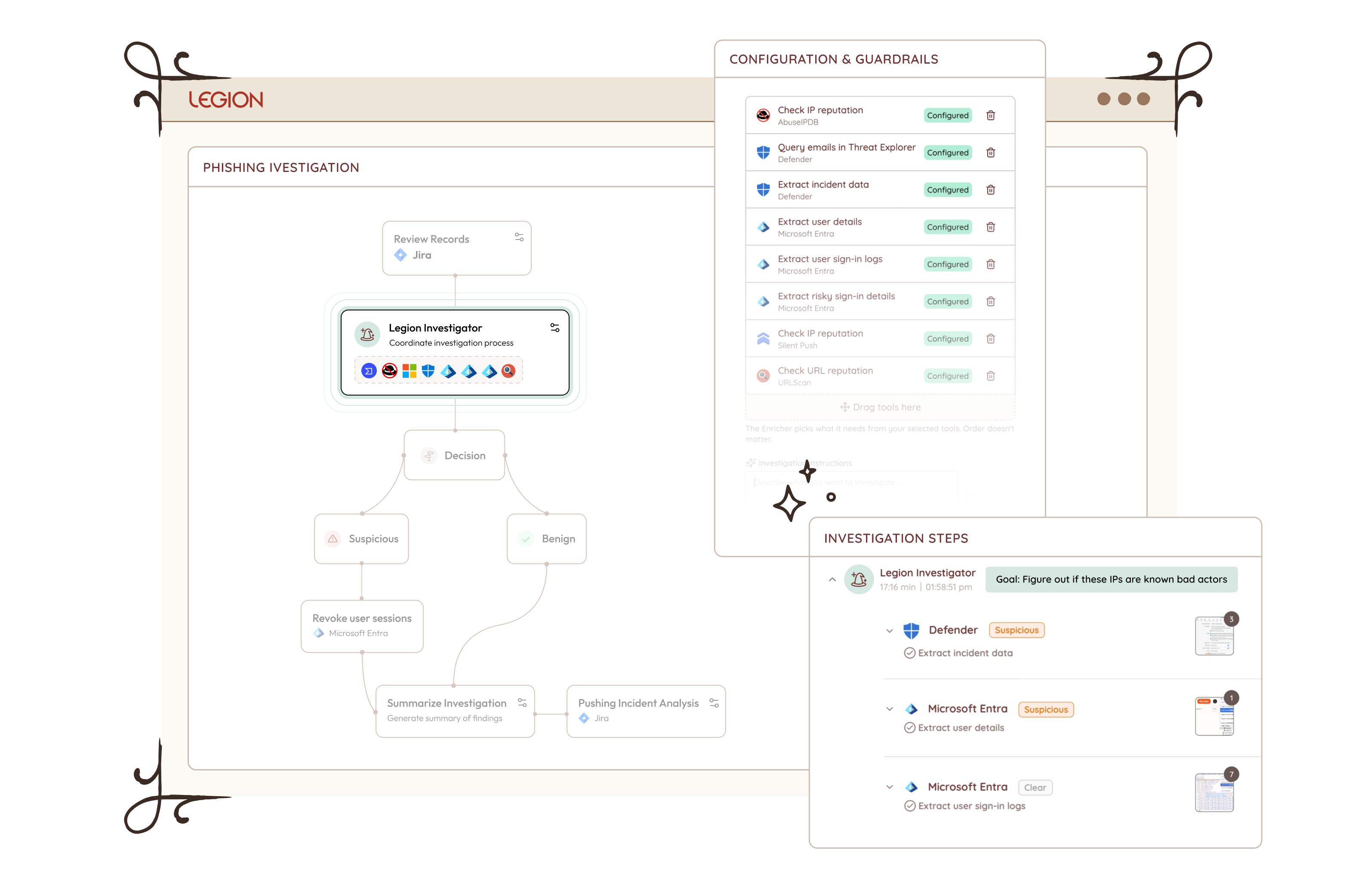 Introducing Legion AI Investigator: AI that reasons where playbooks can't. Define the goal, set the guardrails, and let it investigate across your tools — no integrations required.